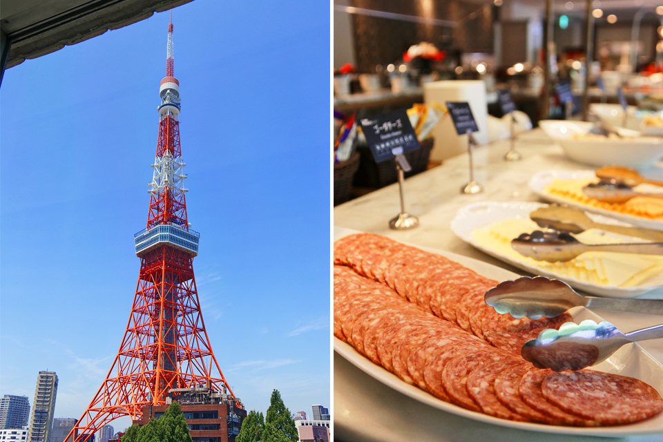「ブッフェダイニング ポルト」も窓際は東京タワービュー。極上の朝を迎えることができる